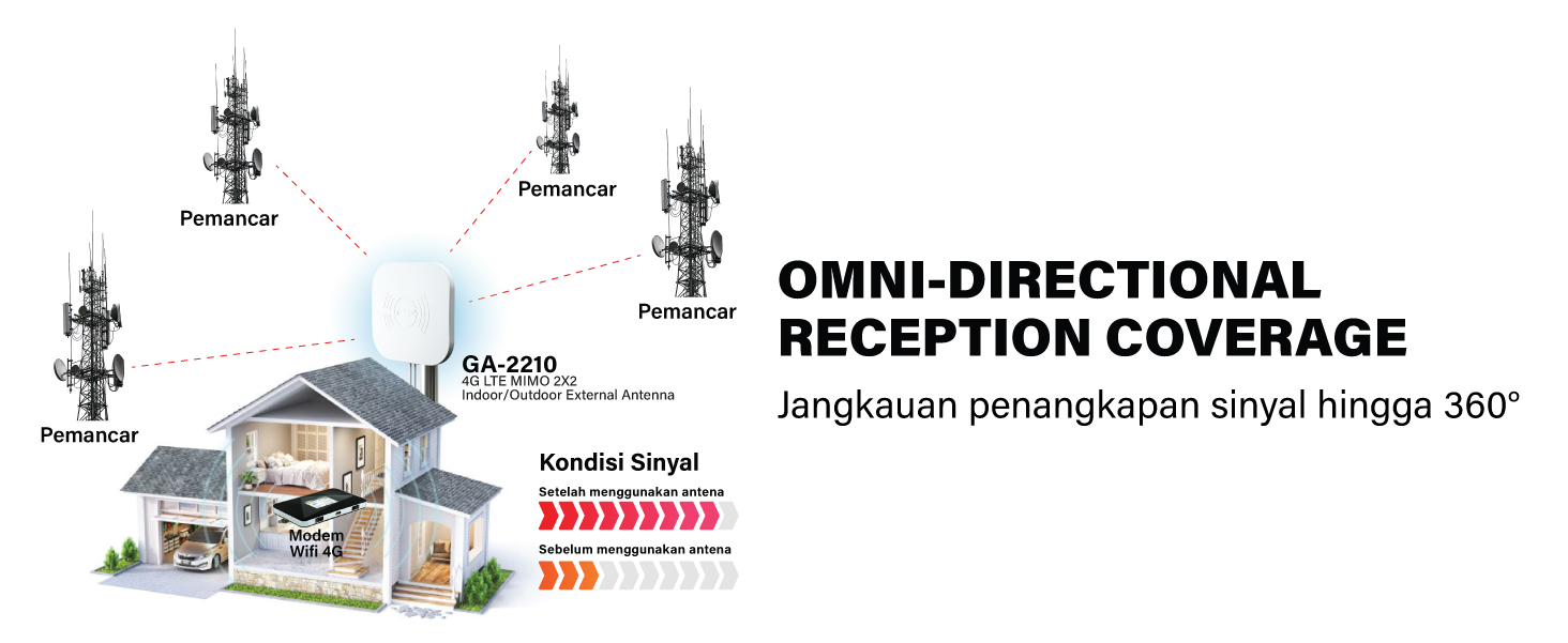 | Tipe Antena | 4G LTE MIMO 2x2 External Antenna (Indoor/Outdoor) |